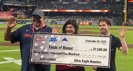 “As a longtime supporter of our military and veterans, we are honored to once again support the Folds of Honor Foundation and its Houston-area scholarship recipients,” said Camilo Rojas III, Vice President of Marketing at Silver Eagle Houston. “We are humbled to partner with the Astros in supporting this remarkable organization and the families of heroes it serves.”