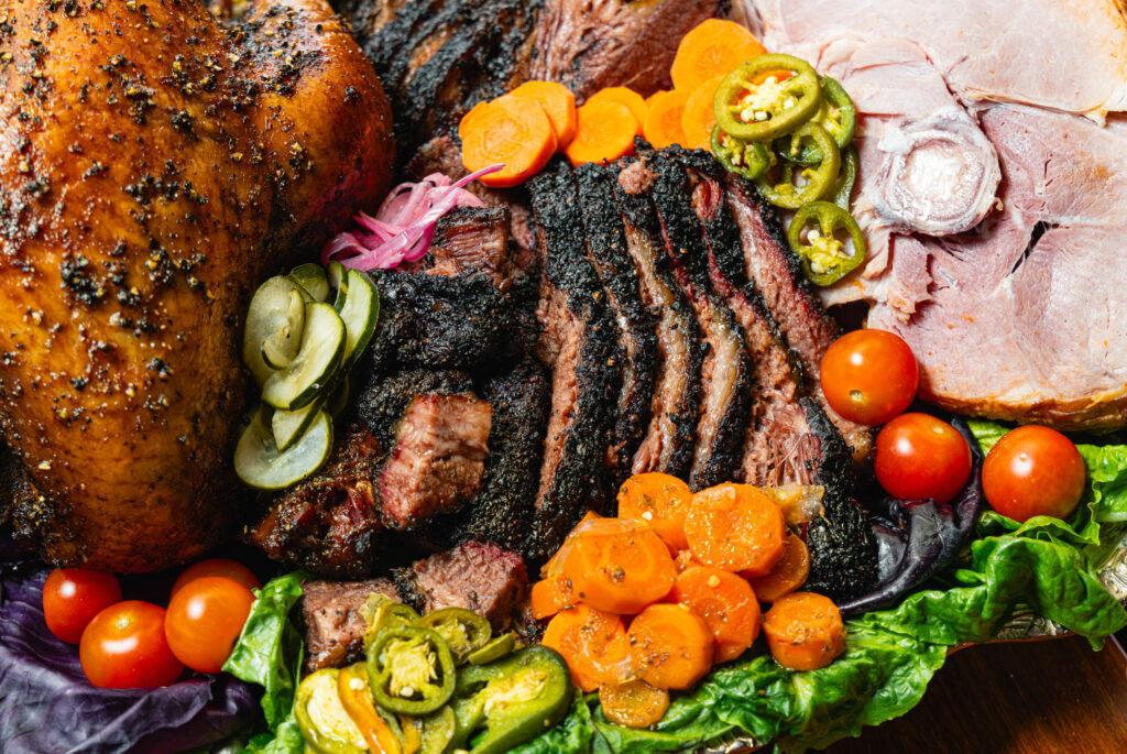 The Pit Room: Bring the smokehouse home for the holidays with the Christmas BBQ To-Go Menu, featuring a full lineup of their signature post-oak–smoked favorites. Choose from Whole Smoked Turkey Breast (5 lb. average; $105), brined for 48 hours with brown sugar, sage, and apples; a Whole Brisket (5 lb. average; $125, includes 1 qt. BBQ sauce); or a Honey-Glazed Smoked Ham (6 lb. average; $75). Photo: Duc Hoang