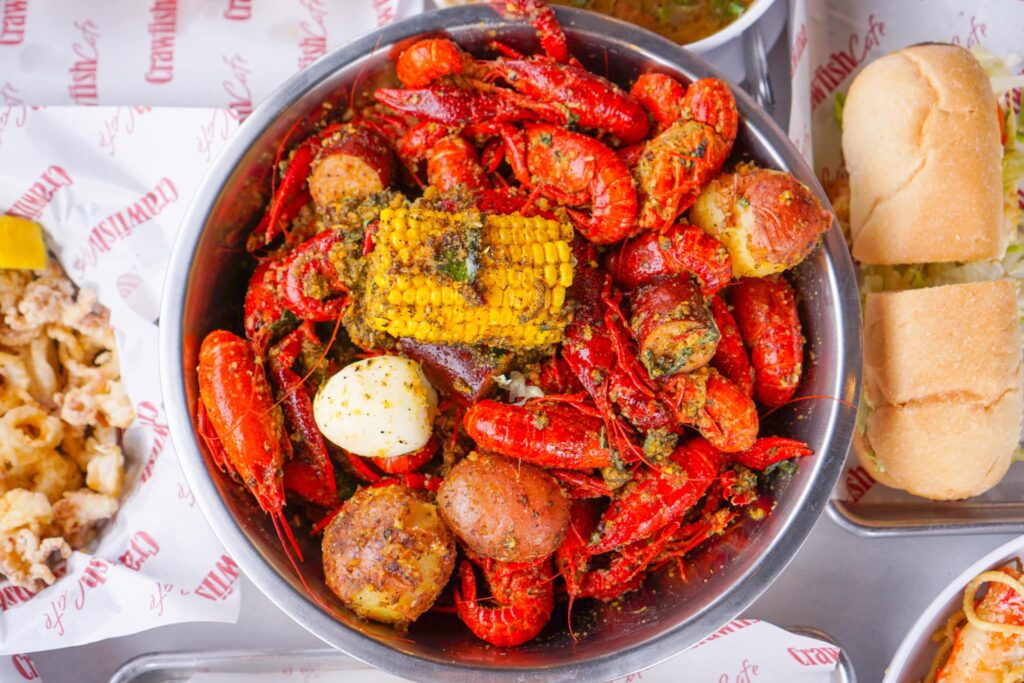 Crawfish Cafe offers a bold, crowd-pleasing alternative to traditional Super Bowl finger foods with catered seafood boils perfect for game day. Catering options range from individual meals and group bundles to party trays and large platters, all available for pickup or delivery within 10 miles of the selected location. Orders can be placed online or by scheduling a call through the restaurant’s website, with at least 24 hours’ notice recommended, especially during peak crawfish season. | Heights, Pearland, Cypress, Woodlands Photo courtesy of Crawfish Cafe